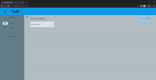 Having intimated that Flet is designed with simple GUIs in mind, lets nonetheless try to make something a tad more complicated than, for example, a simple dashboard with some filters, and shoot for something like a minimal version of Trello - and bestow upon it the totally-independently-arrived-at-name, Trolli. For the purposes of this tutorial I'll assume the reader is familiar with the basic concept and setup of a Flet project (read the tutorials and the docs if not), and instead focus more on aspects that are not part of the existing tutorials.